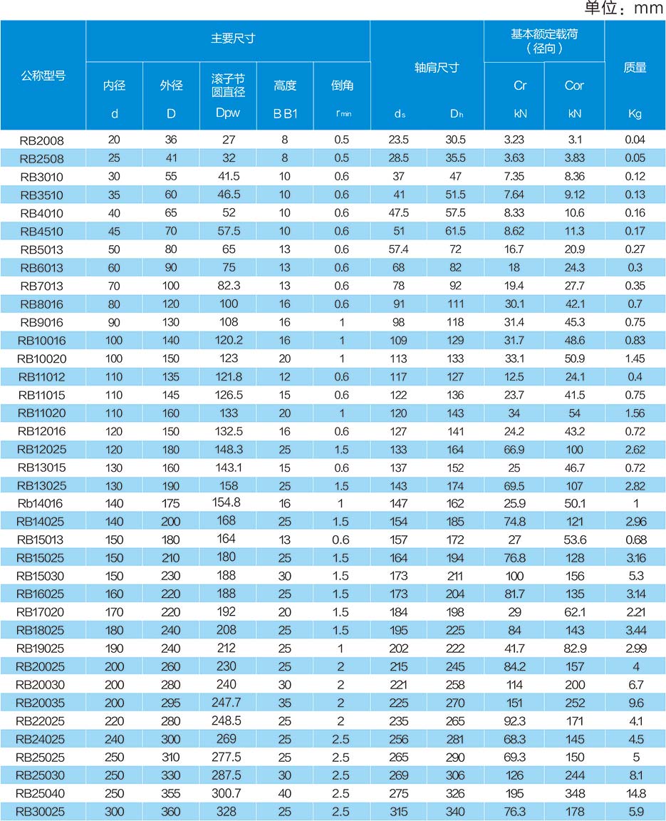 RB系列交叉滾子軸承(內(nèi)圈整體、外圈分體) 介紹:RB型此型號為交叉滾子軸承的基本型。外圈被分為兩篇,內(nèi)圈為整體結(jié)構(gòu),它最適合用于要求內(nèi)圈旋轉(zhuǎn)精度的場合。參數(shù):